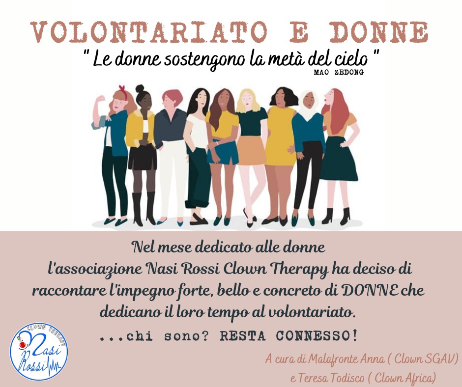 In questo mese dedicato alle donne, con l’8 Marzo in cui cade la festività internazionale della Giornata delle Donne, vi è un’altra splendida iniziativa a cura delle nasine ANNA MALAFRONTE, in arte SGAV, e TERESA TODISCO in arte AFRICA che si chiama “VOLONTARIATO e DONNE”. E’ partita sui Social una staffetta in rosa di video testimonianze che vede protagoniste donne di diverse associazioni che si raccontano, con l’obiettivo di valorizzare l’impegno e il tempo che le quote rosa dedicano alle associazioni di volontariato, soprattutto nell’ambito territoriale locale, per lanciare un forte messaggio di amore e di condivisione.