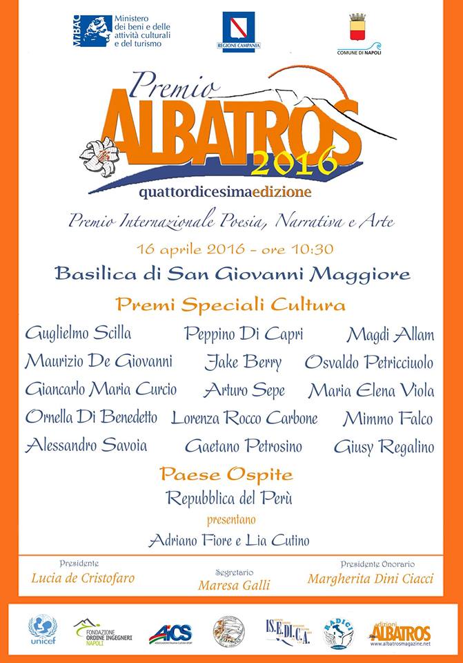 Il Premio Albatros 2016 ha ricevuto i Patrocini del Ministero dei Beni e delle Attività Culturali e del Turismo, della Regione Campania, del Comune di Napoli, dell’UNICEF Campania, della