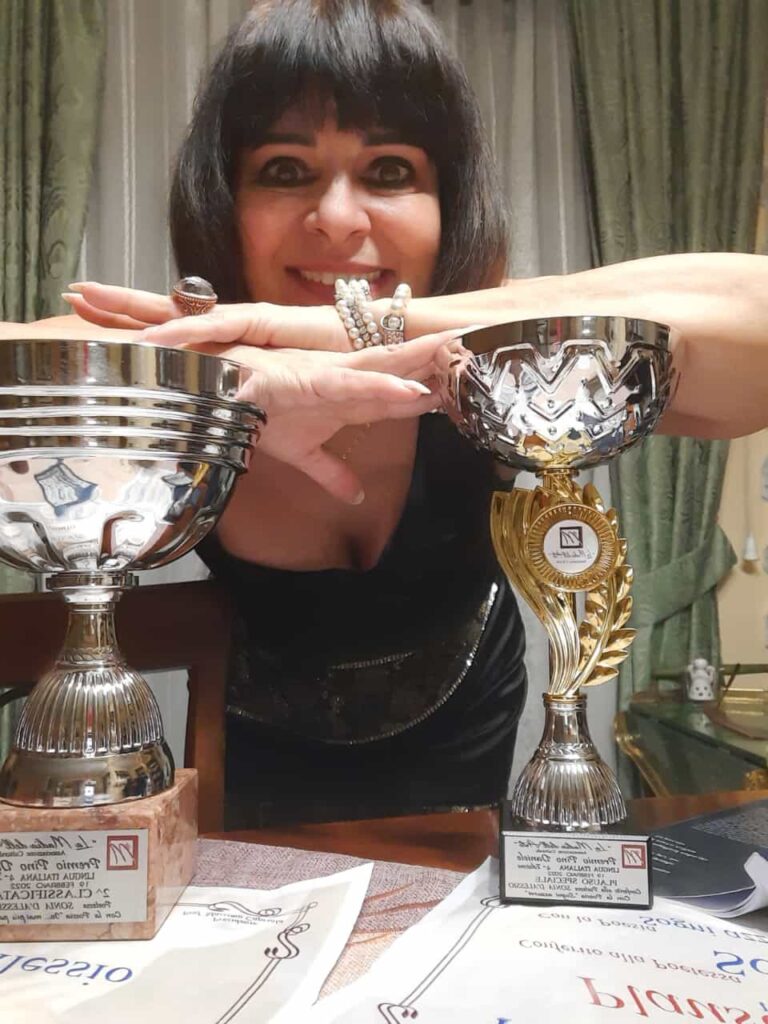 Sul podio, secondo posto, per la poesia di SONIA D’ALESSIO contro la violenza sulle donne, IO…MAI Più PAURA. E quarto posto per quella sulla dislessia SOGNI AZZURRI, estratte dal libro estratte dal libro DI AMORE&POESIA.