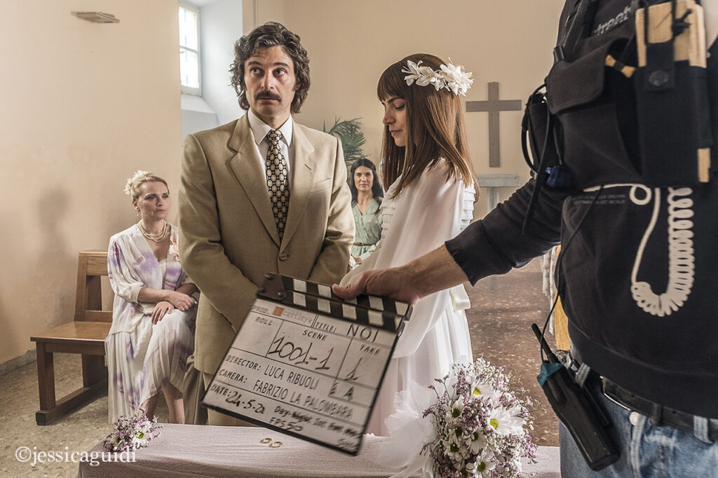 In questi giorni sono virali le tue fotografie scattate sul set di “Noi”, il family drama di RAI1: intense, semplicemente. Come sei diventata fotografa di scena? La prima esperienza è stata, nel 2005: un cortometraggio girato in pellicola e ambientato durante la seconda guerra mondiale. Fino a quel momento avevo lavorato come fotografa di scena a teatro o nei concerti. Rimasi subito affascinata dal privilegio che il set mi offriva di viaggiare nel passato, lasciandomi la libertà di svelare l’inganno con un semplice passo indietro, fotografando il backstage. Qualche anno dopo, la mia prima collaborazione per Cattleya fu in una mini-serie ambientata nei primi anni del ‘900, quindi, girata tutta in costume. Anche “Noi” è un continuo alternarsi di tre piani temporali con flashback tra gli anni ’70, gli 80’ e gli anni 2000. La sfida più grande per me è essere nel qui e ora, vivere il presente. La fotografia mi ha insegnato a “stare” e, grazie al cinema, ho avuto l’opportunità di vivere addirittura un tempo non lineare ma verticale: nel presente sono contenuti passato e futuro, in un unico istante, in uno scatto fotografico che si fa eterno.