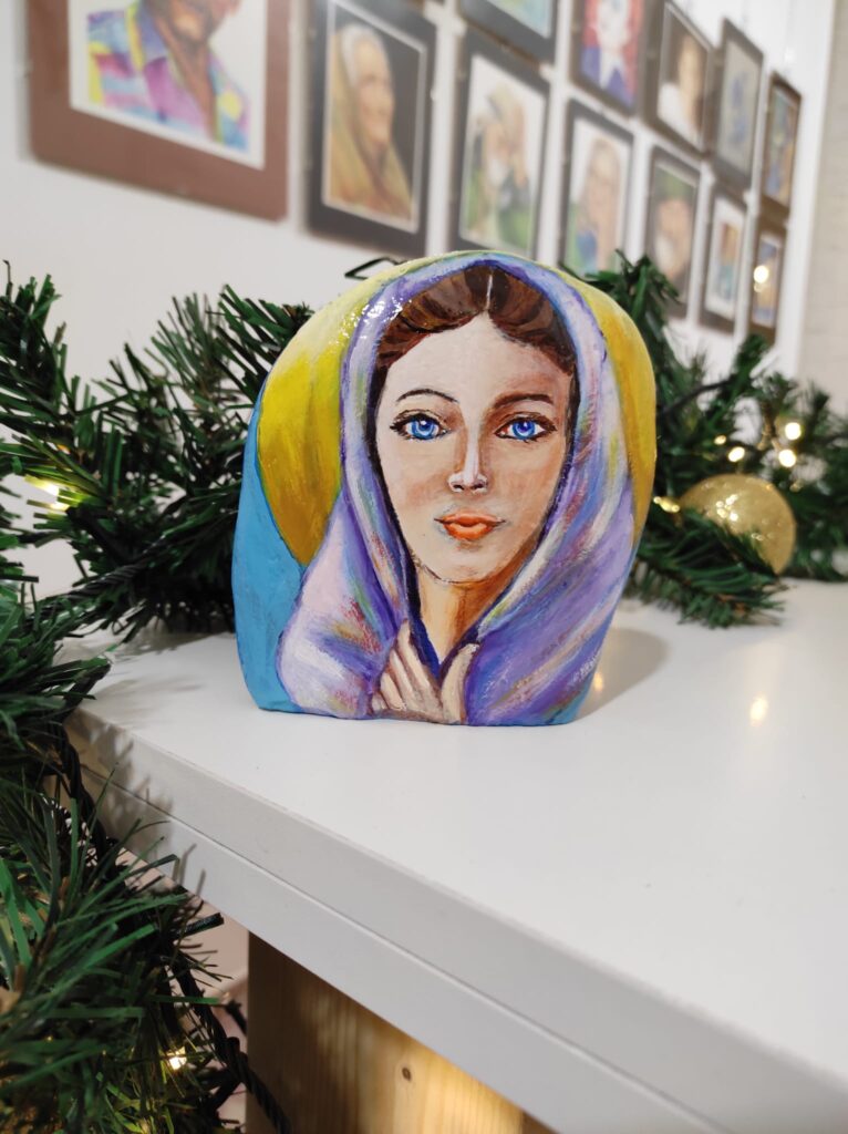 Oltre alla pittura su tela lei lavora anche sui sassi.
