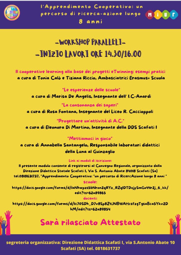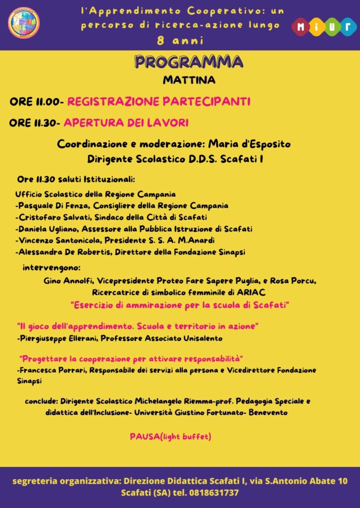 REGIONALE: “APPRENDIMENTO COOPERATIVO: UN PERCORSO DI RICERCA-AZIONE LUNGO 8 ANNI”, ORGANIZZATO DALLA DIREZIONE DIDATTICA STATALE SCAFATI 1, DIRIGENTE MARIA