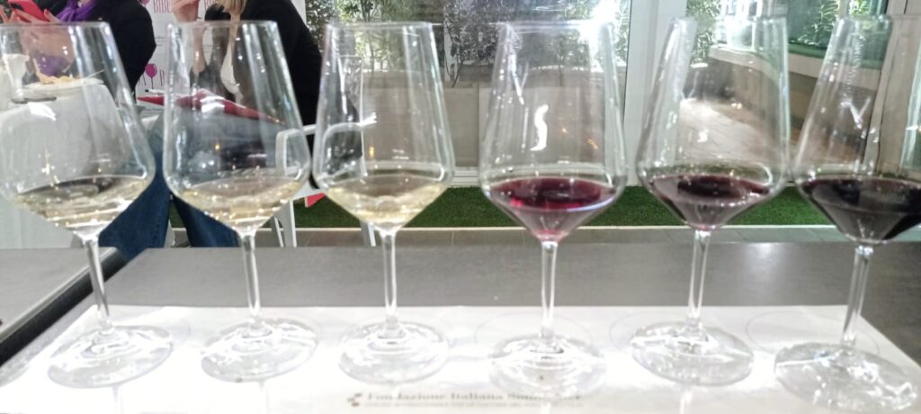 Per tutta la serata i Sommelier della Fondazione Italiana Sommelier hanno curato, più in generale, con un master class a banchi di scuola, un banco d’assaggio del vino, rappresentativo di 6 aziende seguite dall’enologo Nicola Biasi.