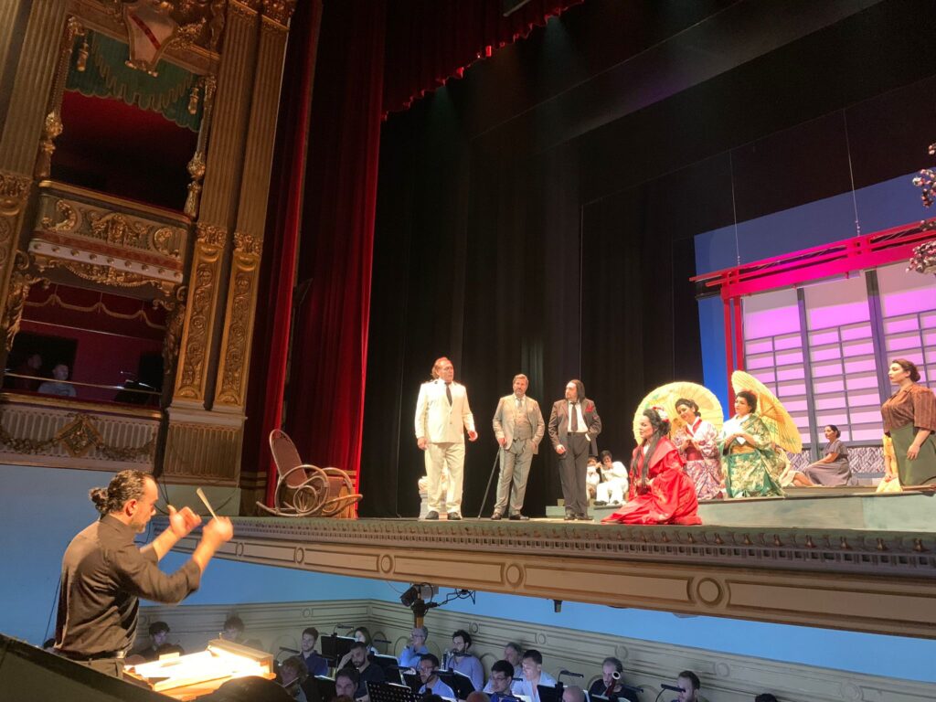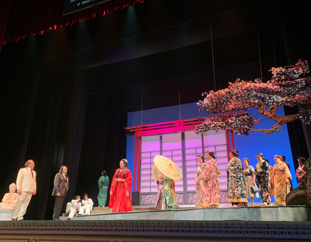 Un amore puro, viscerale, totale, assoluto contro ogni ragionevolezza, per un tenente della marina degli Stati Uniti, F.B. Pinkerton interpretato dal tenore Piero Pretti che fa breccia nel suo cuore e la porterà all’epilogo più tragico. Il dramma pucciniano, interpretato alla perfezione e senza ridondanza e particolari barocchismi ha donato ai personaggi quell’intensità struggente che si consuma in tre ore di rappresentazione per niente monotone. Su tutto, l’Orchestra Filarmonica Giuseppe Verdi con il coro del teatro dell’Opera di Salerno che ha accompagnato magnificamente lo sviluppo psicologico dei personaggi, gli attori principali con le loro personalità complesse. Il modo in cui sono stati fatti ri-vivere, e in particolare Madama Butterfly che, non ha mai fatto mancare quell’intensità struggente, quasi in una completa identificazione drammatica, ha concesso al pubblico un profilo di donna che si deve amare molto. La storia triste e intensa di questa donna che ama senza riserve, nella serata della prova generale ha conquistato unanimemente e acriticamente un pubblico giovane rapito da quest’opera che non conosce stagioni e confini. Un dramma coinvolgente e personale che esprime il conflitto culturale tra antiche tradizioni giapponesi e la moderna e consumistica società statunitense. E la modernità di Madame Butterfly risiede proprio in questo. Il M.o Avagliano, pianista solista e accompagnatore e ripassatore di cantanti lirici, presente in sala con alcuni suoi allievi si è detto assolutamente coinvolto da questa performance che ha raccontato Puccini, che ha voluto andare oltre le mode dell’epoca (cineserie ed esotismi di maniera) con un attento studio di analisi degli strumenti tradizionali orientali e dei modi esatonali e pentafonici.