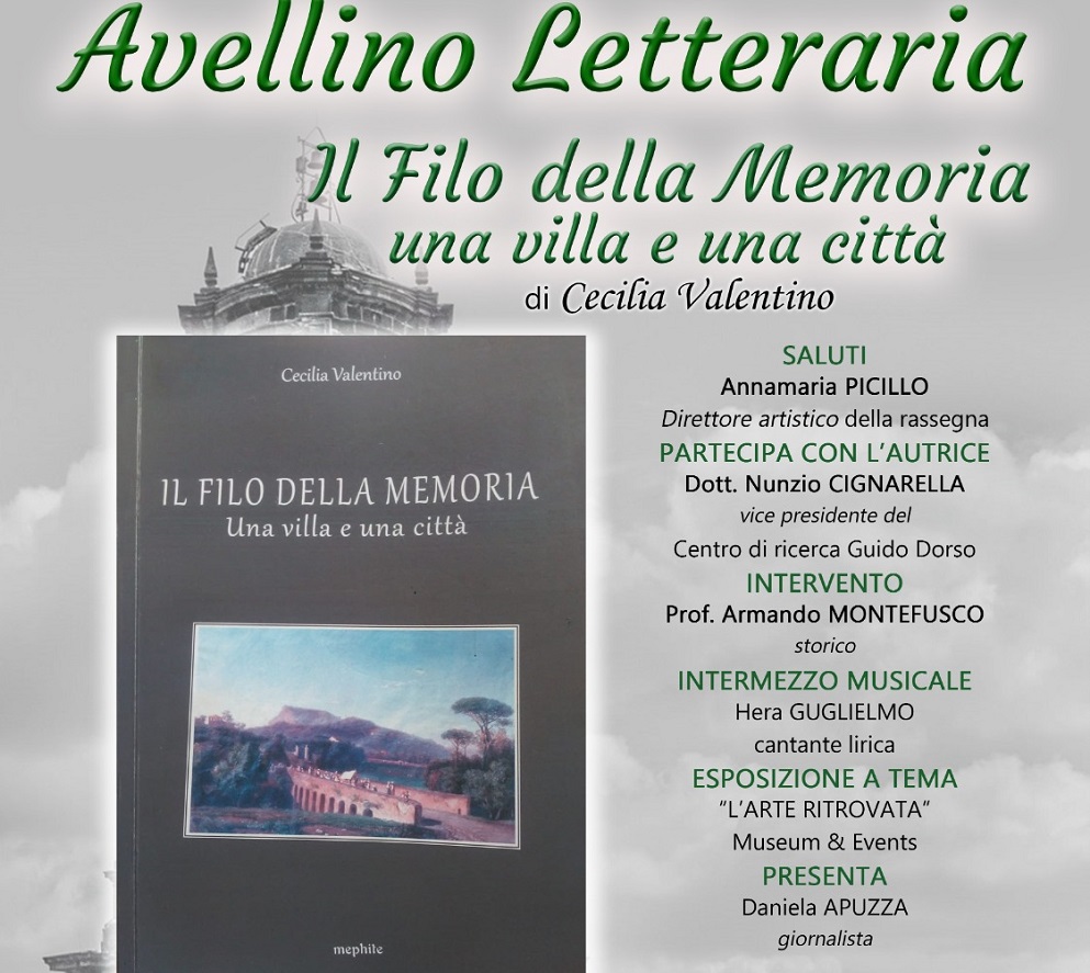 Ancora un appuntamento con il libro per la rassegna “Avellino letteraria” che continua il suo viaggio con “Il filo della memoria”, Mephite edizioni, della scrittrice Cecilia Valentino. Una pubblicazione densa di significati nel rinvenire un’identità e con la quale abbiamo voluto omaggiare la prestigiosa Villa Amendola che riprende la tradizione di diffondere e promuovere la cultura. Un testo che nasce da un’esperienza concreta che ha portato l’autrice a misurarsi con ciò che è storicizzato, facendo tesoro in ciò che l’ha appassionata e approfondendo alcuni aspetti storici e il filo che li unisce. Un concetto di umanità nato dalla volontà di trasmettere la conoscenza e diffonderla tanto da farci sentire partecipi e coinvolti dalle vicende storico-culturali dei luoghi che viviamo.