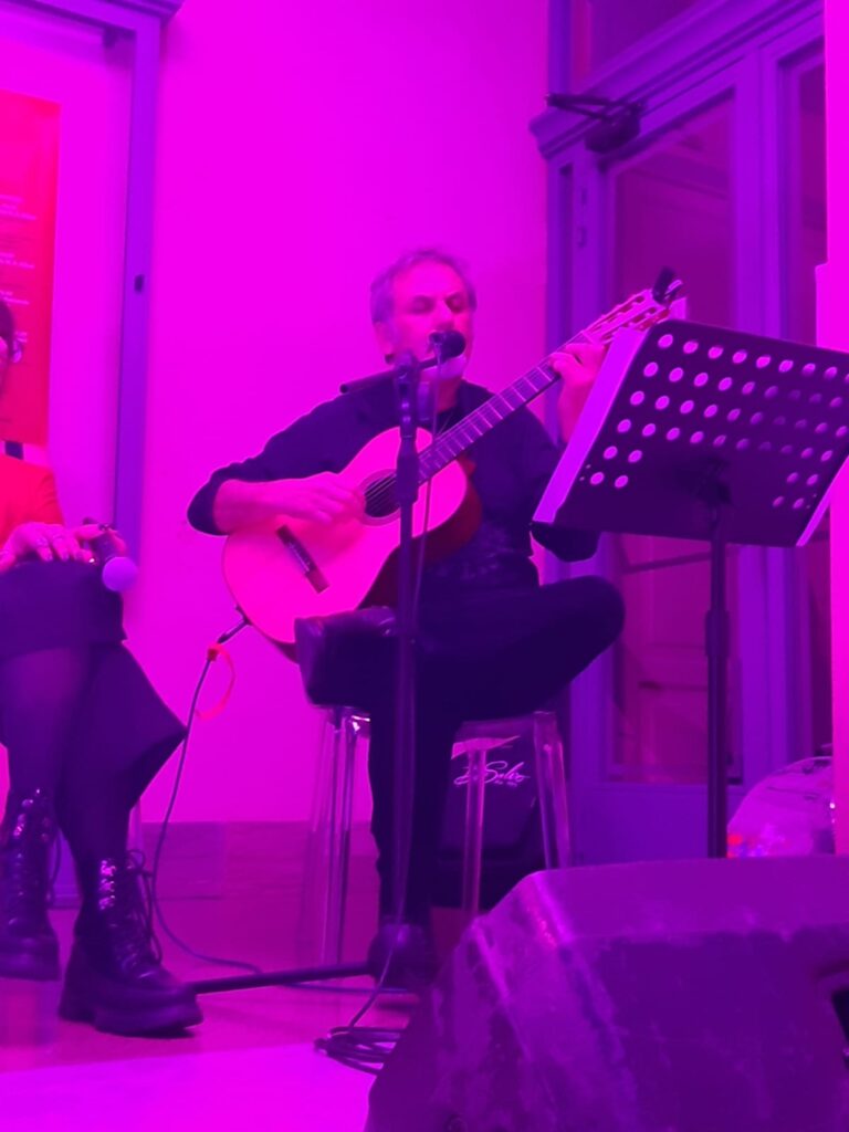 “Germini Massimo, chitarrista, compositore, suonatore di strumenti etnici a corda. Primo compleanno che non basta una mano sola a dirlo, lo scorso 28 ottobre. Ho scoperto la grazia di Germini inseguendo Vecchioni. Ascolto Roberto Vecchioni dagli anni dell’ adolescenza, ma ho iniziato a trattenerlo -intensamente- nella mia vita, 16 anni fa. Era il 23 gennaio 2006, stavo preparando il buffet per la festa di un anno di mio figlio Lorenzo; infilai nel lettore un CD di Vecchioni che mi aveva regalato Christian, mio marito. E Germini era lì, sempre al fianco del Professore, a ogni canzone. A ogni concerto, ogni passo a due. Credo lo accompagni da vent’anni. E così, anno dopo anno, album dopo album, ho scoperto che Massimo non era solo il “chitarrista storico” del Professore. Massimo è un chitarrista e basta. Un compositore. Uno che mescola la musica alla vita e viceversa, ogni giorno che Dio manda in Terra. Ha collaborato con tanti artisti, ha realizzato due album di musica strumentale e, a luglio scorso, ha pubblicato “Qualcosa di familiare”, dove ci mette la voce, non solo le note, su testi del poeta Michele Caccamo. Nella canzone che dà nome al disco, c’ è anche il Professore; stavolta è Vecchioni ad accompagnare Germini. A ottobre 2021 è uscito il libro “Canzoni” (ed. Bompiani) in cui Germini e Paolo Jachia, professore di Semantica, commentano alcune delle più belle canzoni di Vecchioni. Trentatrè canzoni. “Non è un’opera, non è un film, non è un romanzo; somiglia più propriamente a un quadro o a un racconto breve. È un’annotazione, la fotografia di uno stato d’animo, un’urgenza descrittiva che ti pulsa dentro e non puoi fare a meno di liberare. È la forma canzone”: Roberto Vecchioni ci introduce così nel mistero e nella magia di quei tre minuti in cui si racchiude una storia. Una suggestione potente che si modella sulle facce che incontra. Il progetto era partito con un corso all’ università di Pavia, in cui i due artisti milanesi scandagliavano un paio di canzoni alla volta, e poi le suonavano. Quella preziosa eredità è stata raccolta in questo libro. “Vecchioni, è un artista immenso, molto stratificato; nei suoi testi ci sono infiniti richiami, non solo autobiografici ma anche storici e letterari. E quindi tante sfumature se non ce le svelasse lui non le potremmo mai cogliere” racconta Germini.