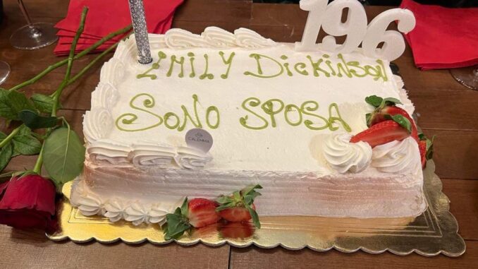Cose che accadono solo a Napoli. Solo a Napoli e solo ospiti di Luigi Grossi, si può gustare una torta con inciso il nome di Emily per i 196 anni dalla sua nascita e noi tutti brindare a lei coi calici alzati.