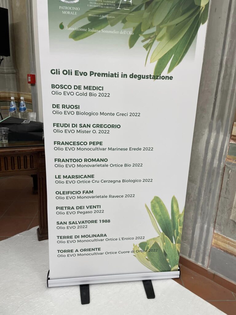 Per la valorizzazione dell’olio d’oliva la presidente della Fondazione Italiana Sommelier della Campania Veronica Iannone ha organizzato , anche quest’anno, Venerdì 24 Marzo, nella Sala degli Affreschi di Palazzo Doria di Angri, la nuova edizione di “5 Gocce”, la premiazione dei produttori di olio della Campania che si sono contraddistinti per la qualità del raccolto nel 2022.