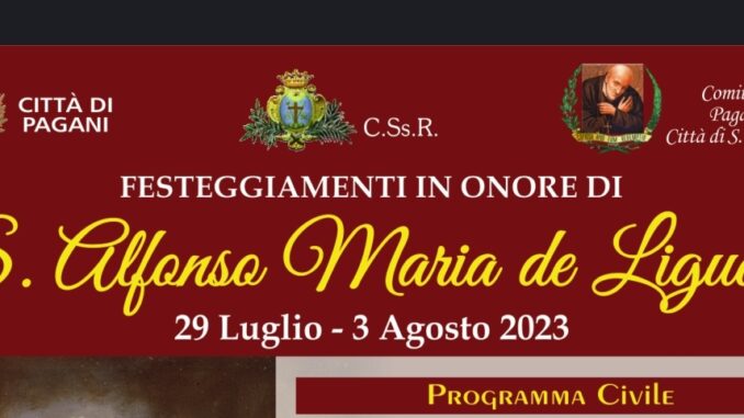 Tutto pronto a Pagani per celebrare , dal 29 luglio al 3 agosto, la Solennità di Sant’Alfonso Maria De Liguori..