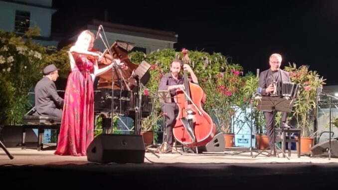 La violinista Anna Tifu, cagliaritana di nascita ed autentico talento di fama internazionale, insieme all’ensemble formato da Massimiliano Pitocco (bandóneon), Romeo Scaccia (pianoforte) e Gianluigi Pennino (contrabbasso), nella serata di debutto delle Corti dell’Arte, ha offerto ai presenti uno spettacolo incredibile, andando a spaziare con disinvoltura dal tango tradizionale a quello di Astor Piazzolla fino a composizioni inedite di Scaccia.Sold out assoluto per una serata strepitosa presentata dalla superlativa Eufemia Fiorelli, presenza fissa e punta di diamante della conduzione delle serate, alla presenza di diverse autorità civili e appassionati e del Sindaco Servalli che con i consueti saluti istituzionali e ringraziamenti agli organizzatori si è detto molto felice ed orgoglioso di questo evento che continua da anni ad avere grande riscontro nella città e nei forestieri.