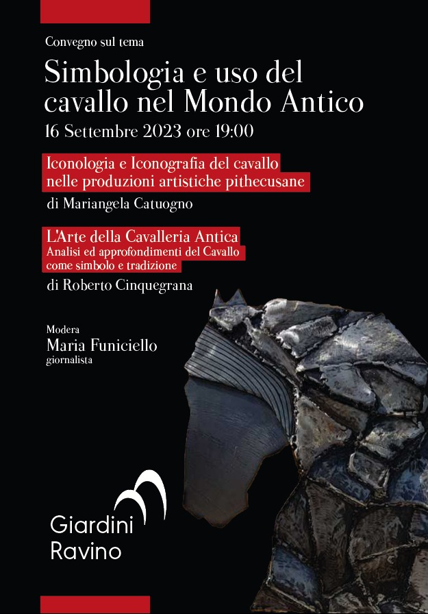 Due gli interventi che impreziosiranno l’evento: Mariangela Catuogno, direttrice delle attività culturali dei Giardini Ravino, si soffermerà sulla iconologia e iconografia del cavallo nelle produzioni artistiche pithecusane; Roberto Cinquegrana, responsabile nazionale del Dipartimento di Equitazione Storica della Federazione Fitetrec Ante e appassionato di arte equestre, affronterà il tema dell’Arte della Cavalleria Antica mediante analisi ed approfondimenti del Cavallo come simbolo e tradizione.
