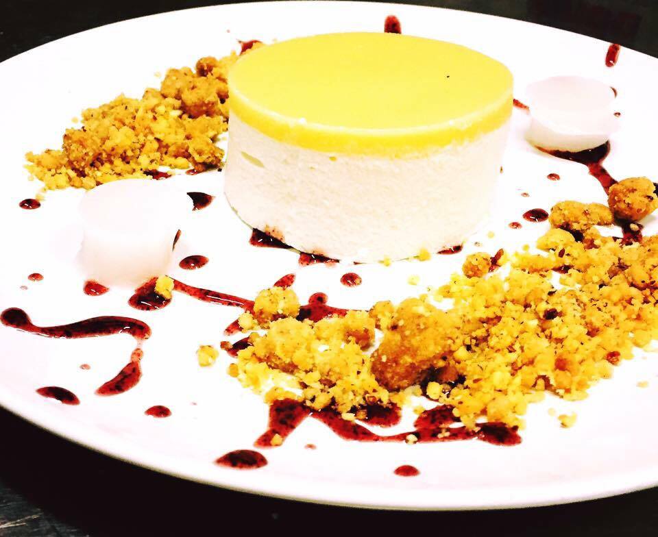 Mettiamo 5 grammi di colla di pesce in ammollo sciolti in un po’ di panna e aggiungiamo il tutto al composto. Mettere in uno stampo a far raffreddare i 200 grammi di purea di ananas; poi, riscaldiamo 5 grammi di colla di pesce la sciogliamo nella purea (sempre messa in ammollo precedentemente). Versiamo sopra la cheesecake e lasciamo raffreddare.