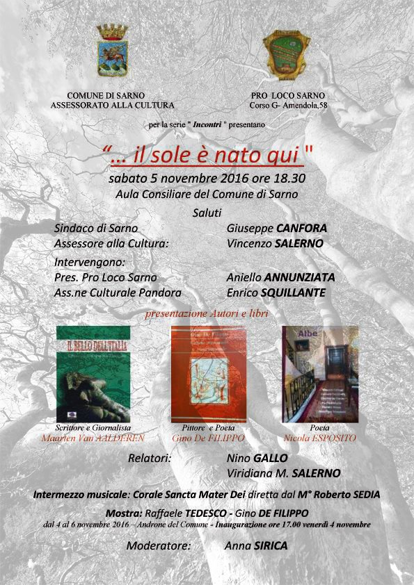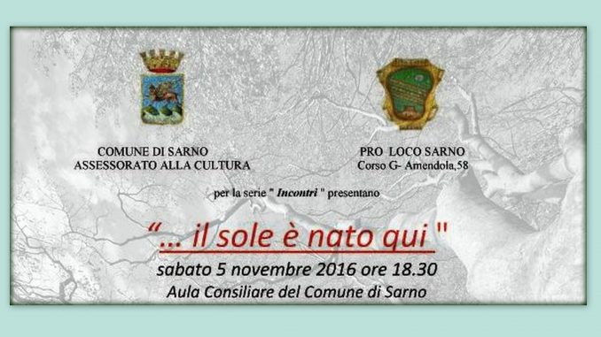 La Pro Loco Sarno, in collaborazione con l’Assessorato alla Cultura del Comune di Sarno, sono lieti di presentare, nell’ambito del progetto “Incontri“, l’Evento “… il sole è nato qui“.