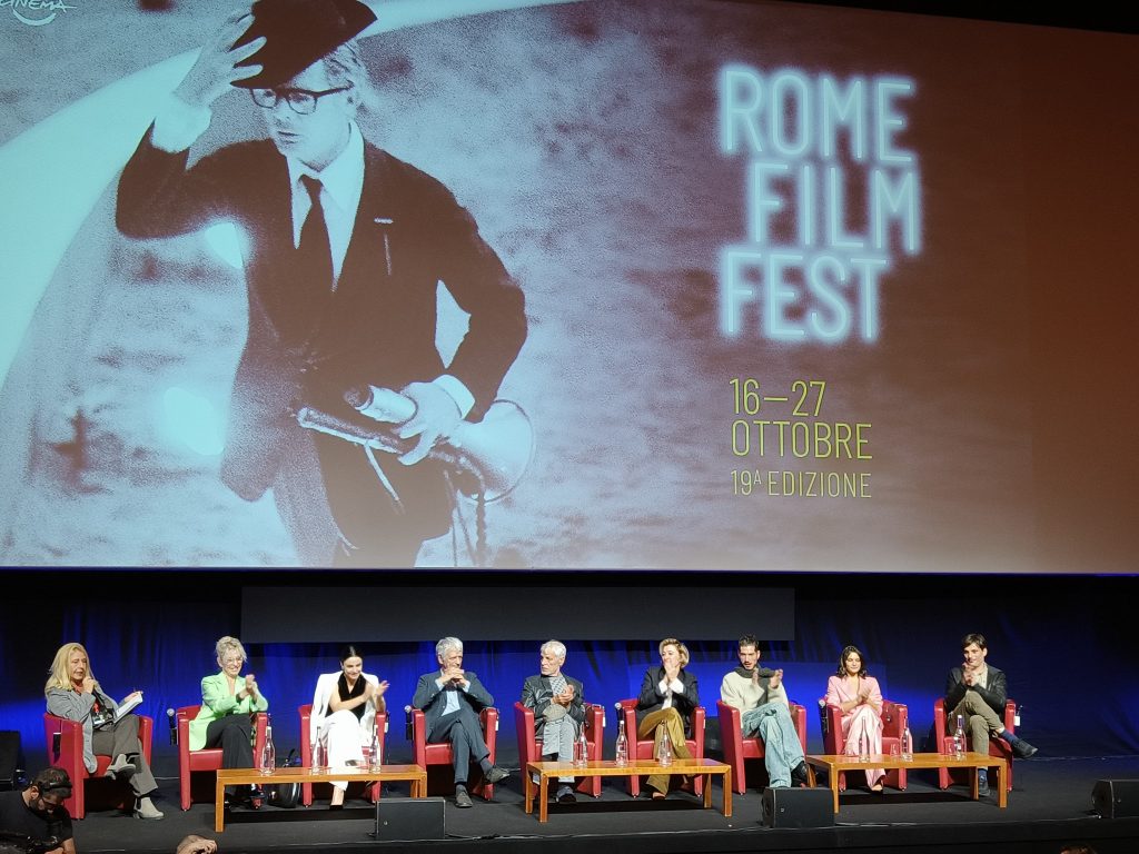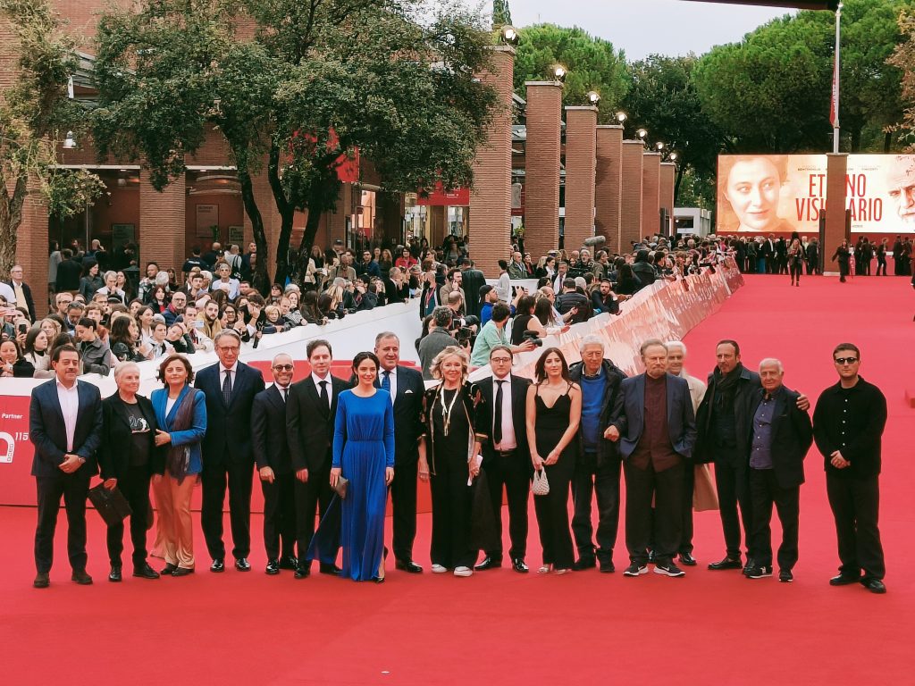 Tra i registi più attesi della giornata l’attore Michele Placido, con lui sul “tappeto rosso” il cast del suo ultimo progetto da regista Eterno visionario, sezione Grand Public, un omaggio ad un illustre della nostra realtà teatrale e letteraria Luigi Pirandello. Ispirato dal lavoro bibliografico di Matteo Callura “Il gioco delle parti”, Placido, porta sul grande schermo una versione più intima della vita di Pirandello. Interpretato da Fabrizio Bentivoglio sul treno diretto a Stoccolma, nel 1934, per ritirare il Nobel per la letteratura. Lungo il viaggio percorre tratti della sua vita familiare e artistica che lo hanno condotto a diventare uno dei più grandi della letteratura del novecento. Quasi una autobiografia del regista Eterno visionario che resta tra i film più costosi della Festa. Tanti gli “effetti speciali” che non hanno contribuito a valorizzare la regia del film. Una “finzione reale” che fanno del film quasi “fantascienza”. Al suo fianco in abiti eleganti non solo gli attori ma anche i familiari della famiglia Pirandello.