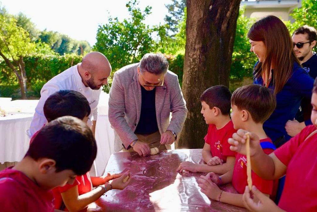 In foto: il Sindaco di Sarno, Francesco Squillante, impegnato nel laboratorio culinario con i piccoli ospiti dell’evento…