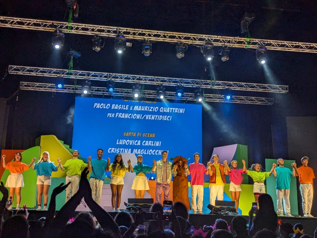 Due gli orari, 15 e 18, dedicati al duo, Ninna e Matti, amato dai teen. Tanti i “falsacchiotti”, fan di Ninna e Matti, presenti al Palapartenope. Noi siamo stati all’appuntamento delle ore 15, che è durato 1 ora e mezza. Inizia lo spettacolo, il palco colorato accoglie i due youtuber, Ninna e Matti, insieme ad altri volti, Samantha e Pippo, che li accompagnano nelle loro challenge. La platea è avvolta nel buio, a illuminare il luogo ci sono le coroncine illuminate dei “falsacchiotti”. Lo spettacolo si basa su una narrazione, alla base della storia c’è il rapimento dei due protagonisti da parte di altri due volti noti dai teen, i DinsiemE. I due, hanno rapito Ninna e Matti, mettendoli in camerino, vestendo i loro panni. Durante le celebri canzoni del duo (1,2,3 Challenge; Emergenza colori; Gelato; Ricreazionologia; Sognare; Il Love), si susseguono momenti di dialogo con i “falsacchiotti” sulla reale identità di Ninna e Matti. Tra una canzone e l’altra, di contesto sono cambiato anche gli scenari, suggestivi per la scelte di colori, ci sono stati brevi momenti dedicati alle challenge. A tal proposito, c’è capitan Challenge rappresentato nello schermo, ubicato al centro del palcoscenico, il quale ha svolto il ruolo di giudice per le sfide tra maschi e femmine. Le challenge hanno rappresentato argomenti di cultura generale e momenti di canto, per quest’ultimo c’è stata un’interessante sfida rap. Solo alla fine, per l’ingenuità degli stessi DinsieMe, dimenticando il cellulare sul palco, il gruppo legato a Ninna e Matti scoprono che gli youtuber sono stati rapiti. Il gruppo libera il duo, rincorre i DinsieMe, ritrovandosi intrappolati in camerino. Quando arriva il duo, Ninna e Matti, replica alcune canzoni, non mancano momenti di danza e acrobazie, per alcuni membri della crew. Danza, challenge, cultura, un mix che ha fatto letteralmente animare i bambini in platea, intonando le canzoni del duo, rispondendo alle domande nei momenti delle challenge, dialogando con gli artisti. Il tutto viene fatto in un momento di pura magia, dove i bambini non hanno dominato il palco, con la loro vivacità, ma si sono fatti incantare dallo spettacolo.