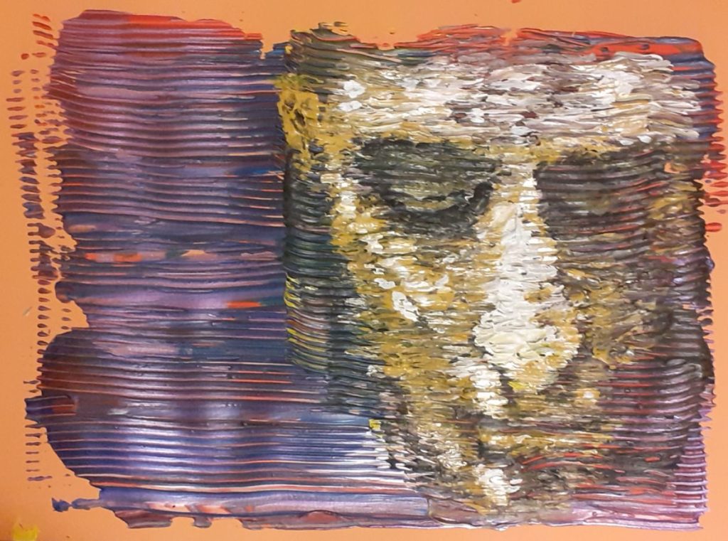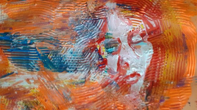 Quale o quali opere ha deciso di esporre durante l’evento I Colori attraversano la Vita?Ho inviato tre opere. Rappresentano il pensiero, la depressione e la bora (il vento tipico delle mie parti).Il pensiero: una donna avvolgente, passionale, ma anche incerta.La depressione: un uomo oppresso, con toni viola cupi e pesanti.La bora: una donna travolta dal vento, potente e secco, che deforma, trasforma e, paradossalmente, salva.Per le prime due opere ho usato un raschietto per dolci (confesso di averlo sottratto temporaneamente dalla cucina di mia moglie) per lavorare il colore acrilico; nella terza ho utilizzato un righello come strumento. Tutte sono state realizzate su cartoncino arancione, un materiale che simboleggia la temporaneità e porta con sé una visione positiva e ottimistica, nonostante i temi complessi trattati.