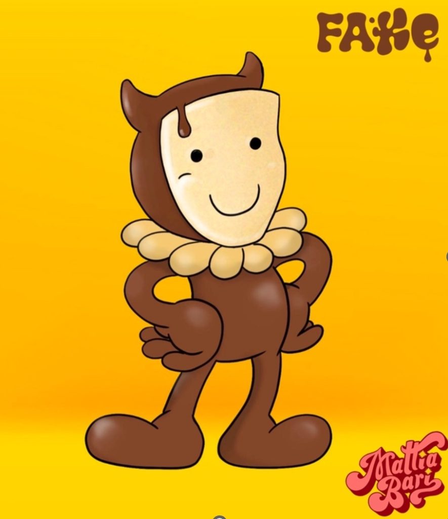 Che cos’è Fake?Hai presente le tipiche personalità false, giusto? Sono all’apparenza dei dolci e di cioccolato e internamente più amari e indossano una maschera, ok questo è un FAKE e ha un solo obiettivo, rimuovere la maschera e riscoprire se stesso. Fake è una caricatura provocatoria, ironica e controversa del nostro mondo contemporaneo. Con la sua maschera distintiva e il suo atteggiamento ribelle, cerca di svelare l’autenticità di ogni individuo. Disegnato per riflettere i problemi sociali contemporanei, Fake è diventato un simbolo di libertà e auto-esplorazione, un’idea estetica avanguardista che si spinge oggi oltre i confini della cultura pop integrandosi con la moda, il design e l’intrattenimento.