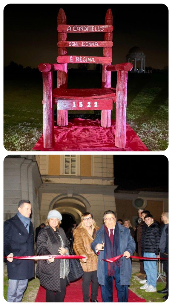 La cerimonia ha avuto inizio con la presentazione del “trono rosso”, un’opera simbolica che richiama il valore della regalità e dell’amore, voluta dalla Fondazione per ricordare le donne vittime di violenza. La scelta di un trono, in linea con la storia borbonica del Real Sito, è un omaggio alla dignità e al rispetto, trasformando questo luogo in uno spazio di riflessione e memoria. L’opera, realizzata con cura e passione, rappresenta un gesto tangibile di vicinanza e partecipazione, ma anche un invito a riflettere sull’importanza di costruire una cultura del rispetto e della legalità.
