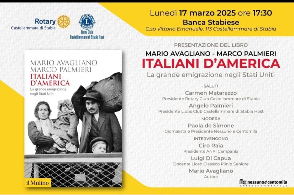 Presso la prestigiosa Sala delle Conferenze della Banca Stabiese di Castellammare di Stabia il 17 marzo 2025 si è svolta la presentazione del libro di Mario Avagliano e Marco Palmieri “Italiani D’America” edito da “il Mulino” pp550 euro 32.