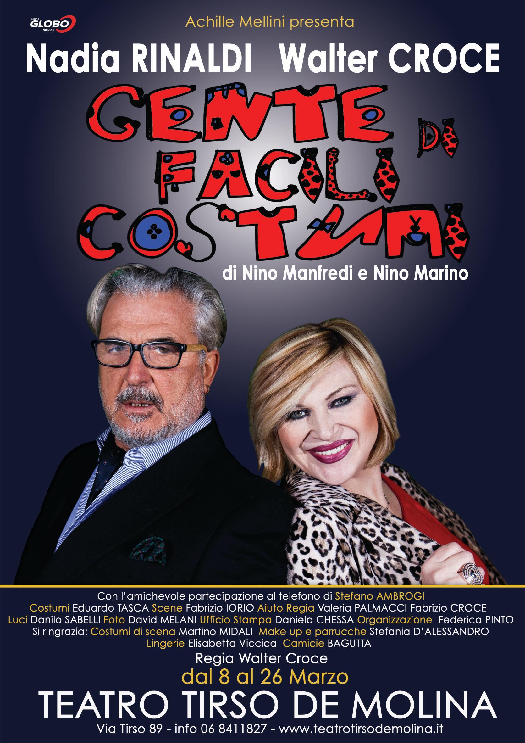 Due gli straordinari interpreti: Nadia Rinaldi e Walter Croce. Andato in scena per la prima volta nel 1988, con il grande Nino Manfredi nei panni del protagonista, “Gente di facili costumi”, è ancora oggi uno dei testi teatrali italiani più apprezzati. Uno spettacolo da non perdere perchè è uno spaccato ironico e multiforme di una Italia bellissima, coperta, però, da un velo di malinconia. La recitazione è eccellente e l’attenzione dello spettatore viene catalizzata senza distrazioni, sorride e riflette. Perchè la vita ha sempre un gusto dolce-amaro.