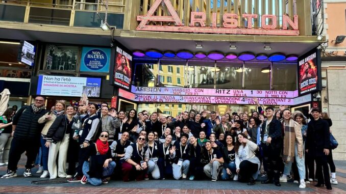 In questi giorni, i 300 studenti stanno vivendo Sanremo come un palcoscenico aperto. La giornata emblematica del 25 aprile è stata scelta per visitare il leggendario Teatro Ariston, vero e proprio tempio della musica italiana: un tour guidato che culminerà nella visita alla mostra attualmente in corso, “Non ha l’età. Il Festival di Sanremo in bianco e nero 1951-1976”. Una collaborazione, fatta di stima reciproca, quella che da anni continua tra il Consorzio Gruppo Eventi e la Famiglia Vacchino, proprietaria dell’Ariston.