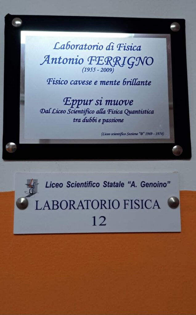 Credere nelle proprie emozioni, sostenere con convinzione le proprie idee, anche quando esse sembrerebbero destinate a scontrarsi contro il muro delle facili convenzioni e delle posizioni di comodo . Tendere al costante miglioramento senza temere le insidie del pensiero dominate. Lottare per il progresso e per l’affermazione della volontà. Anche questi importanti spunti di riflessione sono emersi nel corso della mattinata tenutasi al Liceo Andrea Genoino per ricordare Antonio Ferrigno, illustre cittadino cavese che fu anche liceale brillantissimo alla fine degli anni sessanta. Uno studioso, uno scienziato che ha avuto la forza, il coraggio di animare il dibattito scientifico con mirabili intuizioni, proponendo scenari rivoluzionari capaci di mettere in discussione assiomi ritenuti intoccabili. La fervida lucidità di pensiero, la novità dell’intuito e la ferma determinazione dello scienziato, anche questo è emerso dalla relazione del professore Matteo Cirillo del Dipartimento di Fisica dell’Università Tor Vergata di Roma, che nel suo intervento ha disegnato con semplicità e rigore scientifico i tratti unici di una figura così rilevante nel panorama delle ricerca scientifica internazionale. Ma la grandezza di Antonio Ferrigno non risiede soltanto nella cifra non comune di uno scienziato capace di rovesciare le certezze apparenti per proporre nuove soluzioni tanto e’ che nel corso del convegno la prof.ssa di matematica e fisica Maria Serra e il nipote Vincenzo ferrigno (ex allievo del Genoino) e i compagni di studi al liceo e all’università hanno reso partecipe i numerosi presenti all’ auditorium delle qualità umane Ferrigno. Uno scienziato, una persona perbene, pronta ad aiutare, a sostenere gli altri con slancio generoso e convinzione, tipica qualità degli spiriti puri e delicati, capaci di esprimere valori purtroppo non comuni Pasquale Petrillo, che ha moderato l’incontro, gli interventi delle docenti Mantovani e Lambiase che hanno coordinato un bellissimo lavoro fatto dagli studenti, hanno tutti ricordato non senza un velo di tristezza ed emozione le qualità del loro compagno di scuola scomparso prematuramente in circostanze tragiche in Olanda . Un amico ,un uomo, uno scienziato, la cui memoria si è voluta ricordare con questa giornata intensa e di grande contenuti per trasferire a questa generazione di studenti del liceo Genoino, un momento dedicato solo a lui e con il convinto sostegno del Ds Pietro Mandia. Al termine della mattinata è stata scoperta una targa all’ingresso del laboratorio di Fisica del Liceo Genoino che da oggi per tutti sarà il laboratorio “Antonio Ferrigno”: un piccolo ma significativo segno, a sigillo di uno studioso di fisica che seppe restare per sempre umile e disponibile con tutti. Antonio Ferrigno, uno scienziato dal cuore gentile…