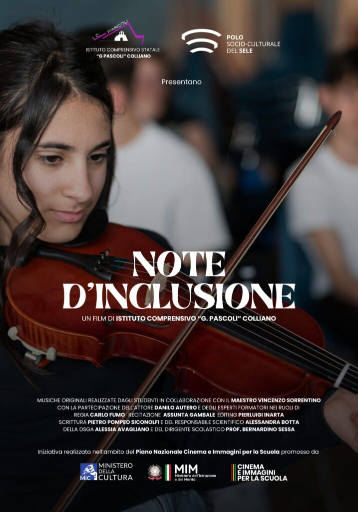 Venerdì 30 maggio 2025, presso il Multisala Cinema Nuovo di Lioni (AV), si terrà l’evento conclusivo del progetto “Note d’Inclusione”, promosso dall’Istituto Comprensivo Statale “G. Pascoli” di Colliano nell’ambito del Piano Nazionale Cinema e Immagini per la Scuola – Visioni Fuori Luogo, sostenuto dal Ministero dell’Istruzione e del Merito e dal Ministero della Cultura.