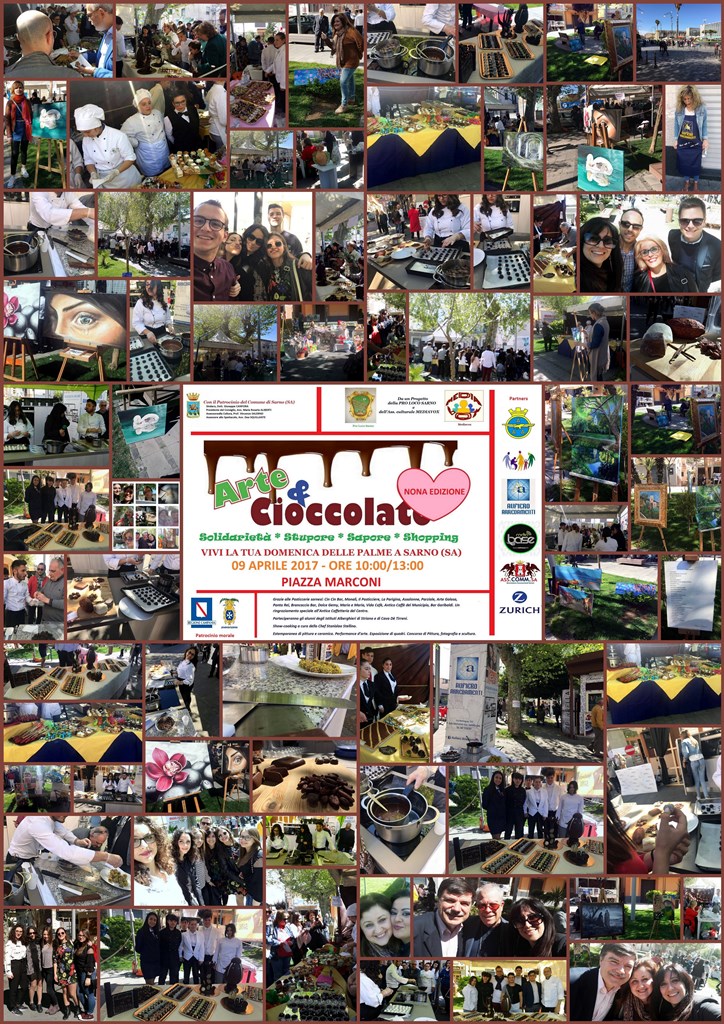 La Manifestazione più gustosa e gustata dell’anno è giunta già alla NONA Edizione. Per tutti i gusti, attesissima da grandi e piccini, l’Evento che soddisfa tutti e 5 i sensi. Stiamo parlando di “Arte&Cioccolato”. L’appuntamento che colora la Domenica delle Palme a Sarno, organizzato dalla ProLocoSarno, dalla Associazione Culturale Mediavox e dall’Ass. Arma Aeronautica sarnese, con l’importante Patrocinio del Comune di Sarno (in particolare, si ringraziano: il Sindaco, Dott. Giuseppe Canfora; la Presidente del Consiglio Avv. Maria Rosaria Aliberti; gli Assessori, Avv. Dea Squillante e Prof. Vincenzo Salerno; i vari Settori dell’Ente); ancora con il Patrocinio morale della Regione Campania e della Provincia di Salerno. Partners: Commissione Pari Opportunità Sarno, MediaVox Magazine, Aufiero Arredamenti, RadioBase, Novea Radio, Centro culturale Arianna, Nasi Rossi – clown therapy, Mensile Eventi.