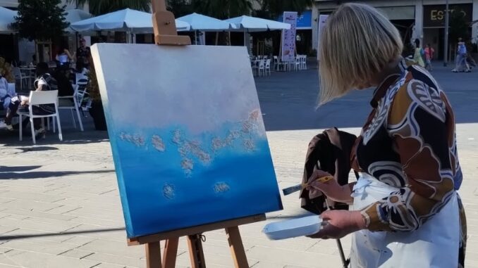 Ci racconta l’estemporanea di pittura che ha realizzato al Village di Cartoons on the Bay? L’estemporanea che ho realizzato al Village di Cartoons on the Bay è rimasta fedele alla mia espressione artistica: l’astratto. Mi sono lasciata ispirare dalla Natura, dai suoi colori, dal messaggio profondo di rispetto e salvaguardia che cerco sempre di trasmettere. Ho voluto rappresentare quella sensazione di benessere che si prova quando si è immersi nel paesaggio naturale, nella calma di un cielo limpido o nella potenza del mare. È stato un momento creativo intenso, in cui ho cercato di trasformare l’emozione in colore, lasciando che l’ambiente mi guidasse nella composizione.