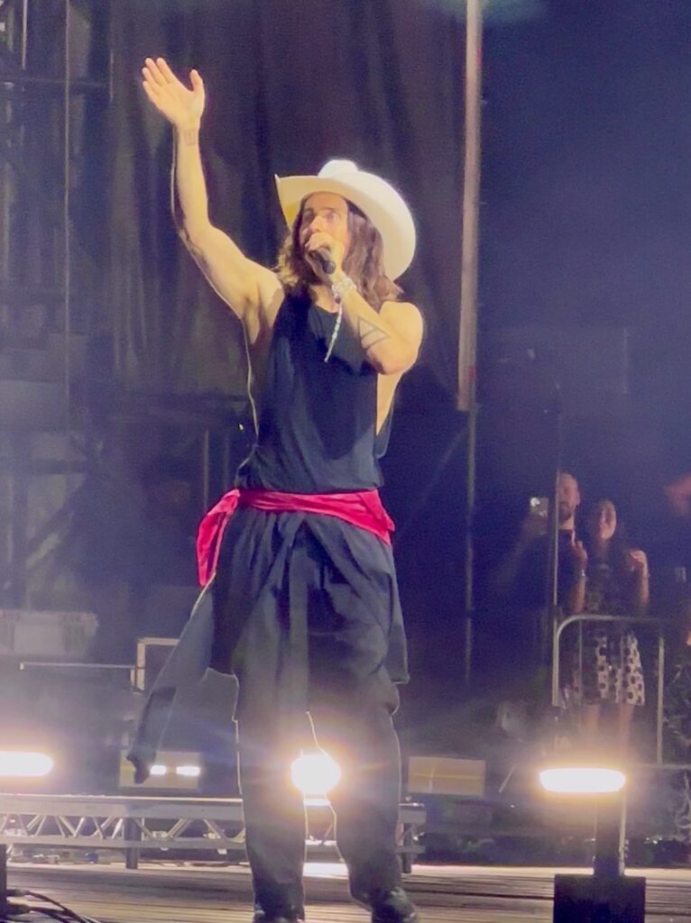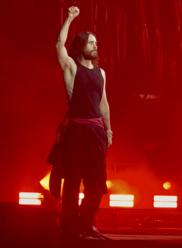 Non appena Jared Leto ha messo piede sul palco, avvolto da quella luce che sembra seguirlo in ogni angolo del mondo, l’Arena è diventata un respiro solo, un coro immenso che si alzava sotto le stelle. Jared, con il suo carisma capace di scaldare anche gli animi più stanchi, ha guardato negli occhi il pubblico, come se potesse vedere dentro ognuno, e con ogni nota ha trasformato la distanza in vicinanza, la fatica in voglia di vivere. Al suo fianco, Shannon Leto, con le sue mani che picchiano sui tamburi come un battito ancestrale, ha dato ritmo ai cuori che pulsavano all’unisono, trasformando le paure in battiti, la stanchezza in energia, la sera in un’alba dentro ognuno.