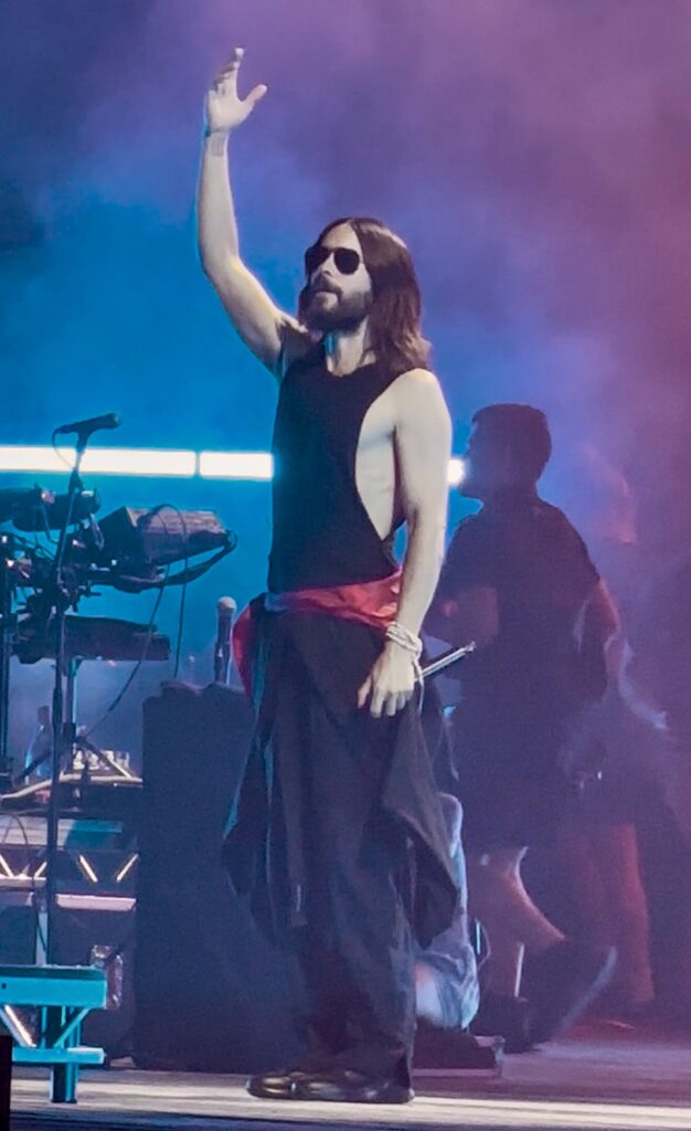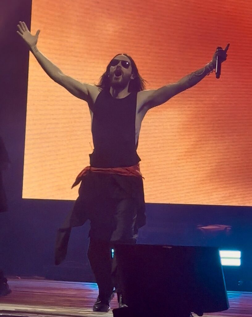 The moment Jared Leto stepped onto the stage, wrapped in that light that seems to follow him wherever he goes, the Arena became a single breath, an immense chorus rising under the stars. With his charisma capable of warming even the most tired souls, Jared looked into the eyes of the crowd as if he could see inside each person, and with every note, he turned distance into closeness, weariness into a hunger for life. At his side, Shannon Leto, his hands striking the drums like an ancestral heartbeat, set the rhythm for hearts beating in unison, turning fears into pulses, exhaustion into energy, the evening into a dawn inside everyone.