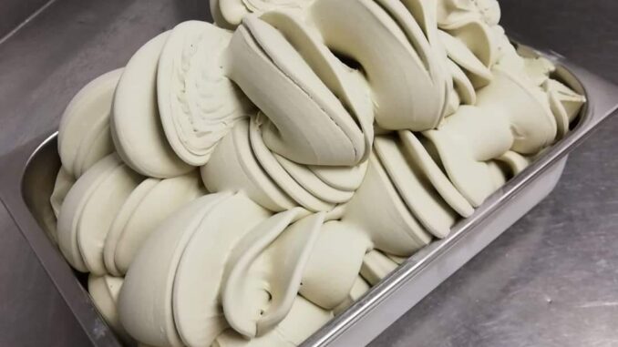 Dal 1937, la famiglia custodisce un patrimonio di sapori centrato su prodotti autentici e inconfondibili: il gelato al pistacchio di Sicoli, cremoso ed equilibrato, dal colore naturale, realizzato con pistacchi selezionati e lavorati con pazienza attraverso processi di mantecazione lenta che ne esaltano la naturale untuosità e il carattere tostato; la crema al pistacchio di Sicoli, vellutata e intensa, dal verde genuino, perfetta per guarnire o semplicemente da gustare a cucchiaio, con una granella croccante che diventa firma inconfondibile (da provare anche il pesto di pistacchio); i gelati all’arancia e alla noce, esempi di come la frutta mediterranea e la secolare tradizione calabrese vengano interpretate con sensibilità moderna; il Bocconotto di Amantea, che qui trova nuova vita non solo nella sua forma classica, ma anche declinato in tavolette di cioccolato e persino in una crema spalmabile. Nell’aria un irresistibile profumo di mandorle, cannella e chiodi di garofano.