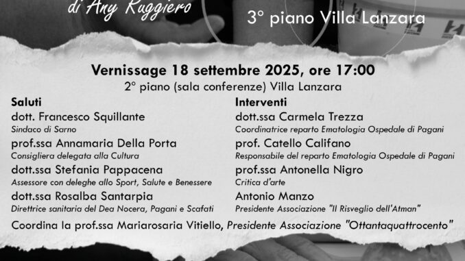 Nella bellissima cornice di Villa Lanzara a Sarno (SA), Giovedì 18 Settembre alle ore 17 ci sarà il vernissage della mostra fotografica dal titolo “Mente, Corpo e Spirito” della fotografa Any Ruggiero