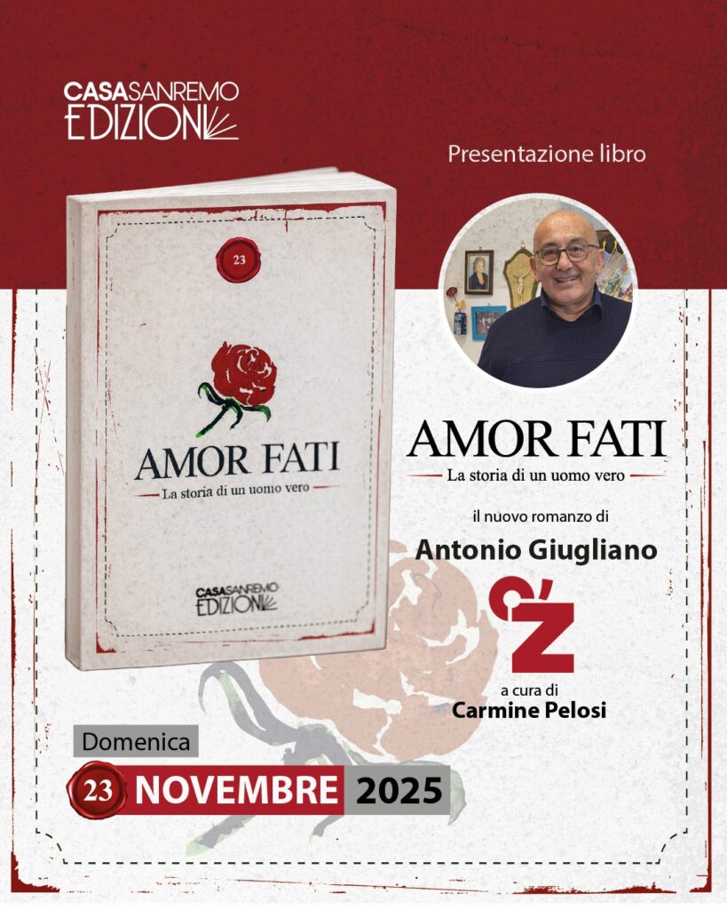 Oggi, 23 novembre, è stata stampata la prima copia di Amor Fati, il nuovo romanzo di Antonio Giugliano che trasforma una vita fatta di cadute, silenzi e rivoluzioni interiori in un dialogo profondo con il lettore. Un’intervista senza nome, ma con una verità che appartiene a tutti.