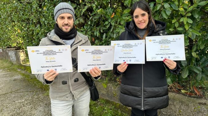 Per questo ogni miele è unico, irripetibile. Cambia con le stagioni, con i venti, con i fiori che incontrano le api lungo il cammino. Ed è proprio questa unicità che ha portato Apicoltura Santoriello a distinguersi nei più prestigiosi concorsi nazionali e regionali: Tre Gocce d’Oro – Grandi Mieli d’Italia e Campania Melix, con riconoscimenti conquistati dal 2023 al 2025, tra cui spiccano il miele di Sulla, il miele di Acacia e il rarissimo e prezioso Corbezzolo, considerato uno dei mieli più complessi e ricercati d’Italia.