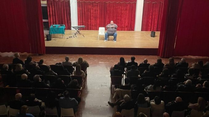 L’attesa per il protagonista dello spettacolo era tangibile. Quando le luci si sono abbassate e il palco è entrato in penombra, un silenzio attento ha avvolto la sala. Poi, l’ingresso di Nello Iorio ha sciolto tutti i timori e acceso un’onda di applausi.