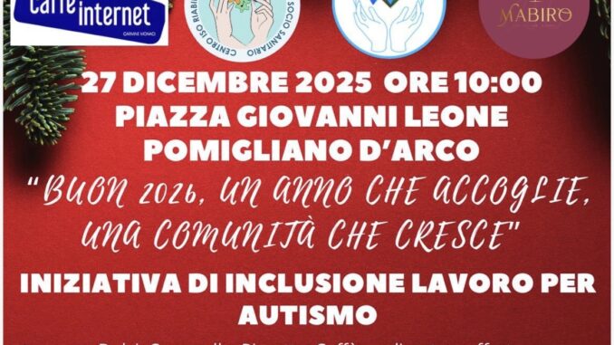 Sabato 27 dicembre, dalle 10:00 alle 13:00, in Piazza Giovanni Leone, i ragazzi del Centro Iso Riabilitativo offriranno una degustazione gratuita di dolci, caramelle, cioccolata, pizzette, rustici e caffè, preparati con amore e cura da loro stessi. Sarà l’occasione per chiudere l’anno nella speranza di dare continuità all’inclusione della disabilità nel mondo del lavoro, con l’appoggio dell’intera comunità di Pomigliano d’Arco.