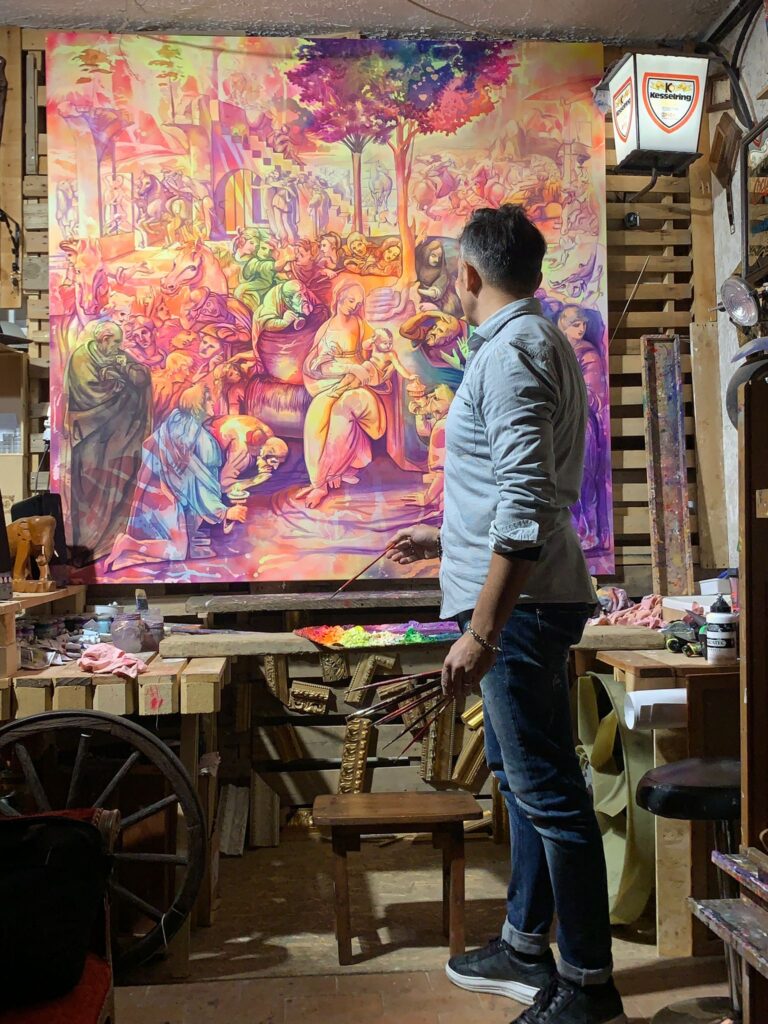 Nel tuo lavoro si avverte un dialogo costante con i grandi maestri del passato, in particolare con Leonardo e con l’arte fiorentina. Che rapporto hai con questa eredità così potente? Leonardo da Vinci per me è un maestro a trecentosessanta gradi, un esempio assoluto di come l’arte possa essere pensiero, visione, conoscenza. Amo profondamente tutti gli artisti fiorentini perché hanno saputo unire rigore e anima, tecnica e spiritualità. Il mio intento non è mai quello di replicare, ma di rendere omaggio. Attraverso la mia arte contemporanea cerco di portare quella grande lezione nel presente, lasciando che parli con un linguaggio nuovo, emotivo, immediato.