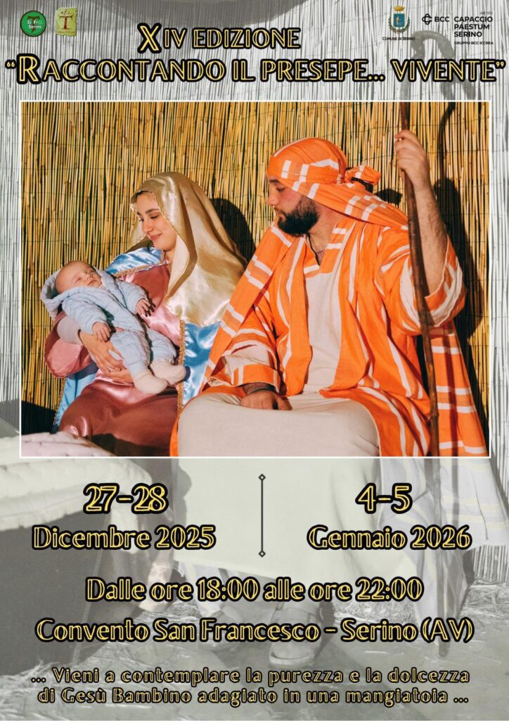 Ci sono luoghi che non hanno bisogno di parlare, perché raccontano da soli… E poi ci sono artisti che sanno ascoltarli. A Serino, nei giorni 4 e 5 gennaio 2026, il Convento di San Francesco non sarà soltanto lo scenario della XIV Edizione di “Raccontando il Presepe… Vivente”, ma diventerà un respiro comune, una soglia aperta tra ciò che è stato e ciò che continua a nascere.