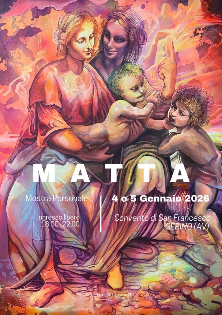 Il momento più intenso arriva quando il gesto divino si fa visibile attraverso le mani di chi crea: durante le serate, Sabino Matta darà vita a una Performance di Pittura dal Vivo. La tela si anima sotto gli occhi del pubblico, il colore prende forma, il silenzio si riempie di significato. Non c’è distanza tra chi crea e chi osserva: c’è un tempo condiviso, fragile e irripetibile, in cui l’arte accade. Accadrà domenica 4 e lunedì 5 gennaio, dalle 18:00 alle 22:00, nel cuore del Convento di San Francesco di Serino.