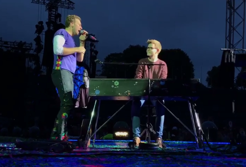 Così il giovane si ritrova a scavalcare le transenne per riuscire a salire sul palco. Chris gli cede il suo posto e, con grande naturalezza, il ragazzo si destreggia al pianoforte, dando prova della sua bravura e stupendo sia il pubblico che lo stesso Martin che, fingendo di andare via, afferma che il ragazzo sarebbe in grado di continuare il concerto anche da solo. Appena la voce di Martin e il suono del pianoforte si uniscono, i fan impazziscono e cominciano a cantare, diventando parte essenziale dell’esibizione. Durante la performance, i due si sorridono e si crea una perfetta sintonia, quasi come se si conoscessero già; riescono a seguirsi a vicenda, adeguando la musica alla necessità dell’altro. Il ragazzo appena salito sul palco sembra essere totalmente a suo agio e suona perfettamente una delle canzoni più famose dell’album, “A Head full of Dreams“, con cui il gruppo britannico si aggiudica il terzo posto tra i concerti che hanno incassato di più nel 2016.