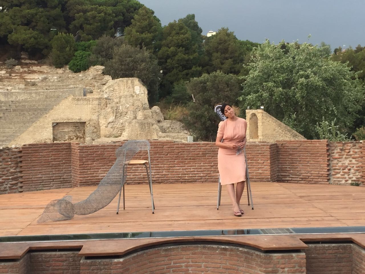 Mi sorprende l’interpretazione di Antonella Romano, attrice e scultrice che sposa questo spettacolo e quest’atmosfera vestita del suo abito di scena rosa antico e del suo sguardo profondo che racconta prima ancora delle sue parole.