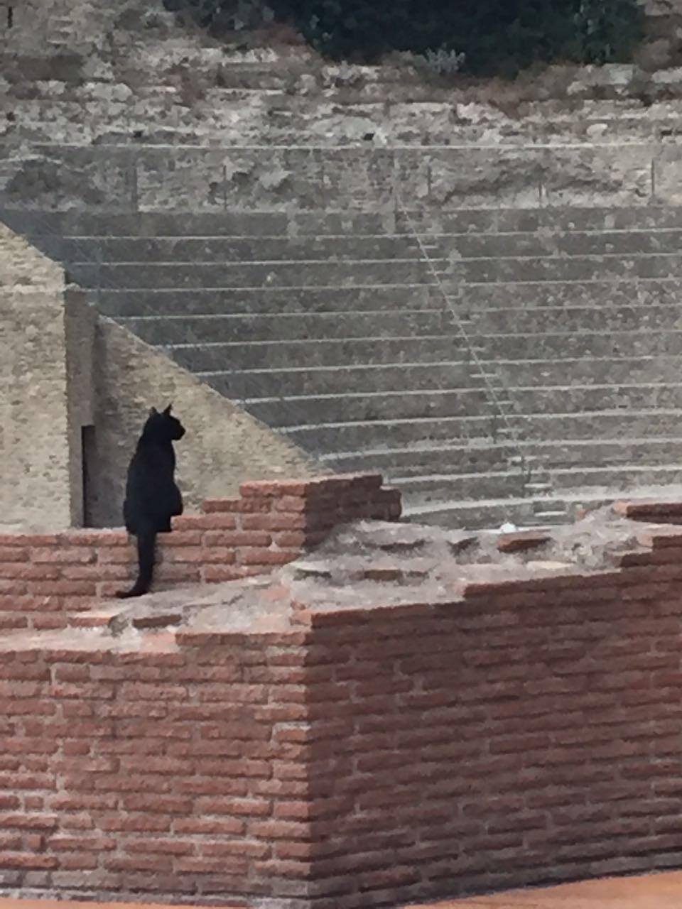 Perchè soffermarsi tanto sulla descrizione di questo posto? Perchè a guardarsi intorno fra gabbiani che volano sui resti dell’antico teatro, gatti che si muovono sinuosi fra le pietre e il prato, fra l’odore del mare alzato dal vento lieve e la quiete… sembra quasi che si avverta, per davvero, il canto delle sirene.