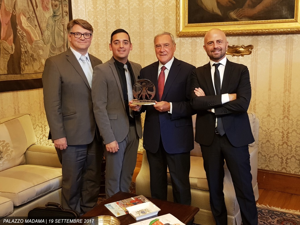 Il giovane regista di Colliano è stato ricevuto, il 19 settembre a Roma, dal Presidente On. Pietro Grasso per un incontro privato istituzionale. Presenti anche Luca Abete, conduttore del festival, e Nicolas Simmich, center manager de La Cartiera.