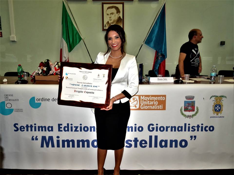 Per la sezione Giovani, l’Assostampa Campania Valle del Sarno premia Brigitte Esposito per il suo prezioso impegno, per la simpatia, per la cortesia, per la carica di umiltà, per la giusta ambizione nel campo giornalistico… il tutto corredato dalla dovuta competenza.