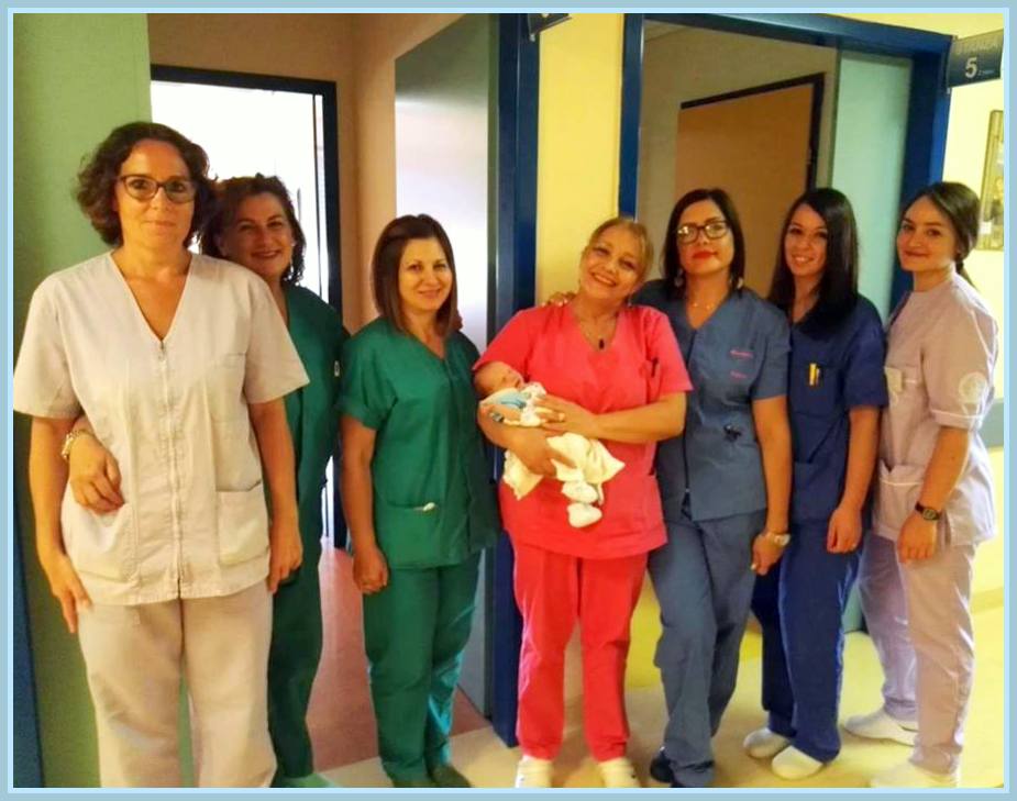 In foto: il Primario Dott. Elberti, la Coordinatrice delle Ostetriche Dott.ssa Bellomo, la Ginecologa Dott.ssa Gambardella e alcune Ostetriche.