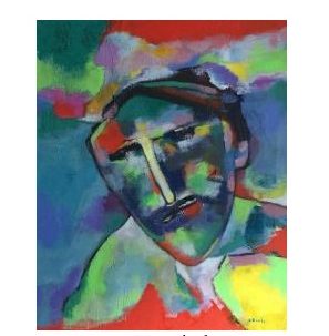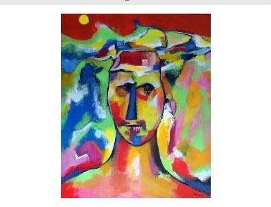 che nel nostro caso sono solo tre quelli dichiarati come tali, ma sono invece molti, se consideriamo che in ogni personaggio, figura, animale, oggetto, o paesaggio si riscontra una traccia di una proiezione introspettiva dell’autore stesso. Certamente lo spettatore che si aspetta di vedere un ritratto fotografico, che trasmetta ai posteri i lineamenti somatici dell’artista, resterà completamente deluso. Questi autoritratti sono una scomposizione e ricomposizione di forme, sentimenti, stati d’animo, sensazioni che l’autore rimette in essere attraverso campiture di colori, che sono accostati per significare la sintesi di un suo modo di pensare o essere: sono, come in un lungo periodo, una sintassi di vari elementi linguistici che – pur disparati e contrastanti – esprimono una brillante sinfonia. I tre autoritratti rappresentano tre stati d’animo (contingenti) dell’artista, che in quel momento ha avvertito l’impulso di presentarsi tale, quale si percepisce; dà la percezione di volere essere una figura sintomatica, entrare nel ruolo di un clown che fa sorridere piccoli e adulti (non dimentichiamo che Lorenzo fa parte di un’associazione di volontari, che hanno lo scopo di tenere su il morale di bambini disabili, ammalati, soli, nonché adulti ammalati). A questi autoritratti si collegano un altro autoritratto che presenta un volto più luminoso (per il giallo che domina), ma più criptico e incomprensibile, come avanza la bestia oppure ho toccato la mia anima, dove il volto dai tratti compatti, ma anche sfuggenti, significa un’anima