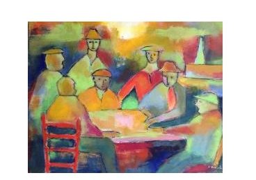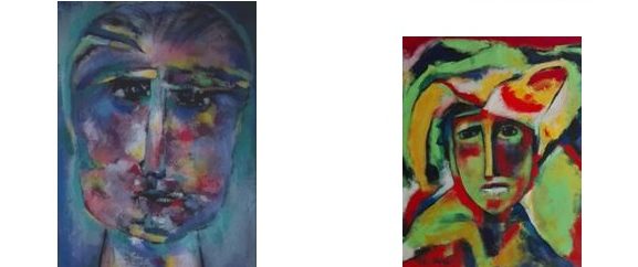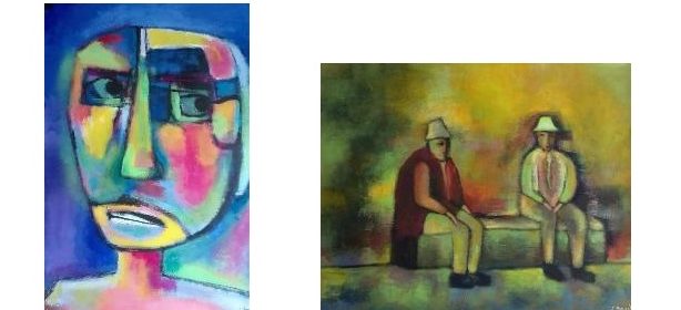 Quindi l’uomo, se è abbandonato a se stesso, rimane nella paura, nello sbalordimento: la prova certa è siamo umani, come pure la maschera, dove la deformazione dei lineamenti facciali ci danno la prova evidente di questa disperazione. Neppure i giocatori di carte, di memoria cezanniana, ci offrono quella distrazione che ci attendiamo. L’unica speranza nostra per poter vivere con serenità sono l’altro emisfero umano mondiale, le donne, le quali sono rappresentate in questa mostra in modo quasi caleidoscopico.
