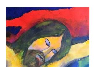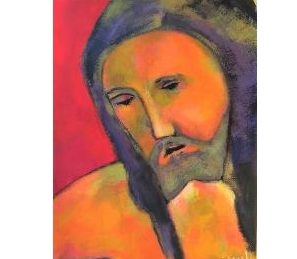 L’altra via è l’offerta del Figlio, il sacrificio della croce, dove Cristo, l’uomo della croce, si abbandona al dolore come in fino al dono del figlio, dove è rappresentato il volto di Cristo, sfinito dal dolore in punto di spirare. Il giallo rosa della vita è in netto contrasto con i capelli e la barba scura di Cristo, intrisi di sangue. La sequela del Cristo rappresenta per noi l’unica certezza e salvezza.